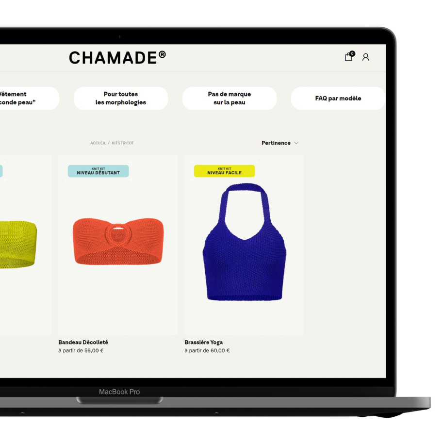 Chamade, c’est une nouvelle manière de vivre le tricot : un fil innovant, des knit kits faciles à transporter, et une méthode « easy peasy » pour se sortir de toutes les difficultés et réaliser soi-même des vêtements près du corps pour un usage sportswear, beachwear et streetwear. Chamade fait la promesse d’un moment à soi, d’une parenthèse méritée, pour apprendre à tricoter, exprimer sa singularité et sa créativité. Nos kits s’adressent aux débutants(tes) comme aux tricoteurs(euses) confirmés(ées). Nos modèles s’adaptent à toutes les morphologies. Notre objectif : vous permettre de pratiquer le tricot sans contrainte, où et quand vous le souhaitez, sans galérer, avec des ouvrages de petites surfaces pour des résultats rapides.
